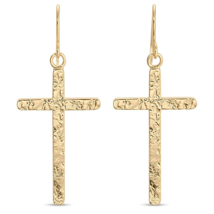 Long Gilded Cross Earrings: Gold