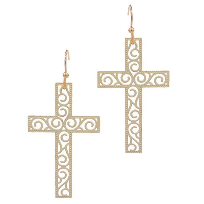 Brass Metal Cross Shape Hook Earrings