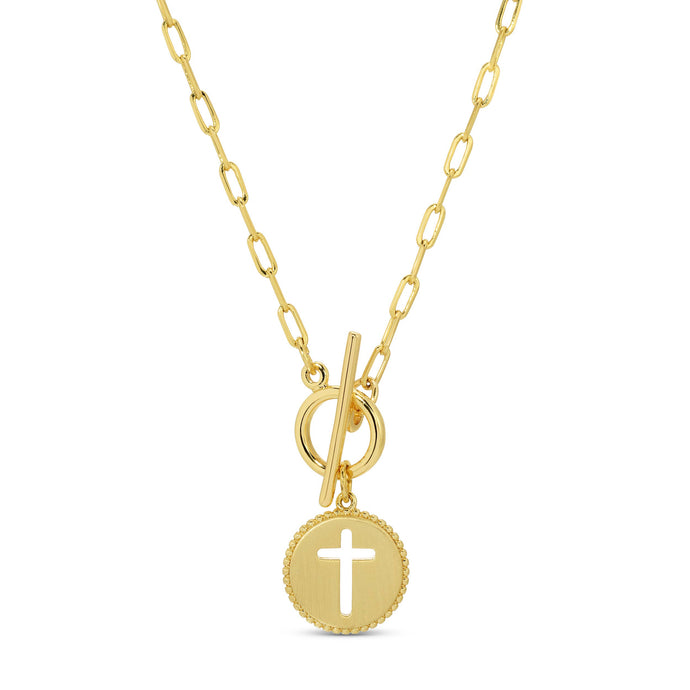 Cross Paperclip Toggle Necklace: Gold
