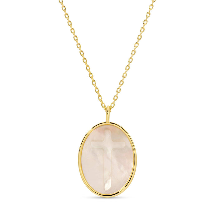 Cross Etched Shell Pendant Necklace