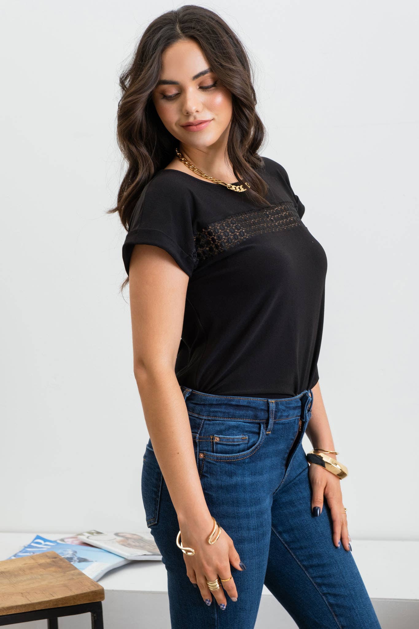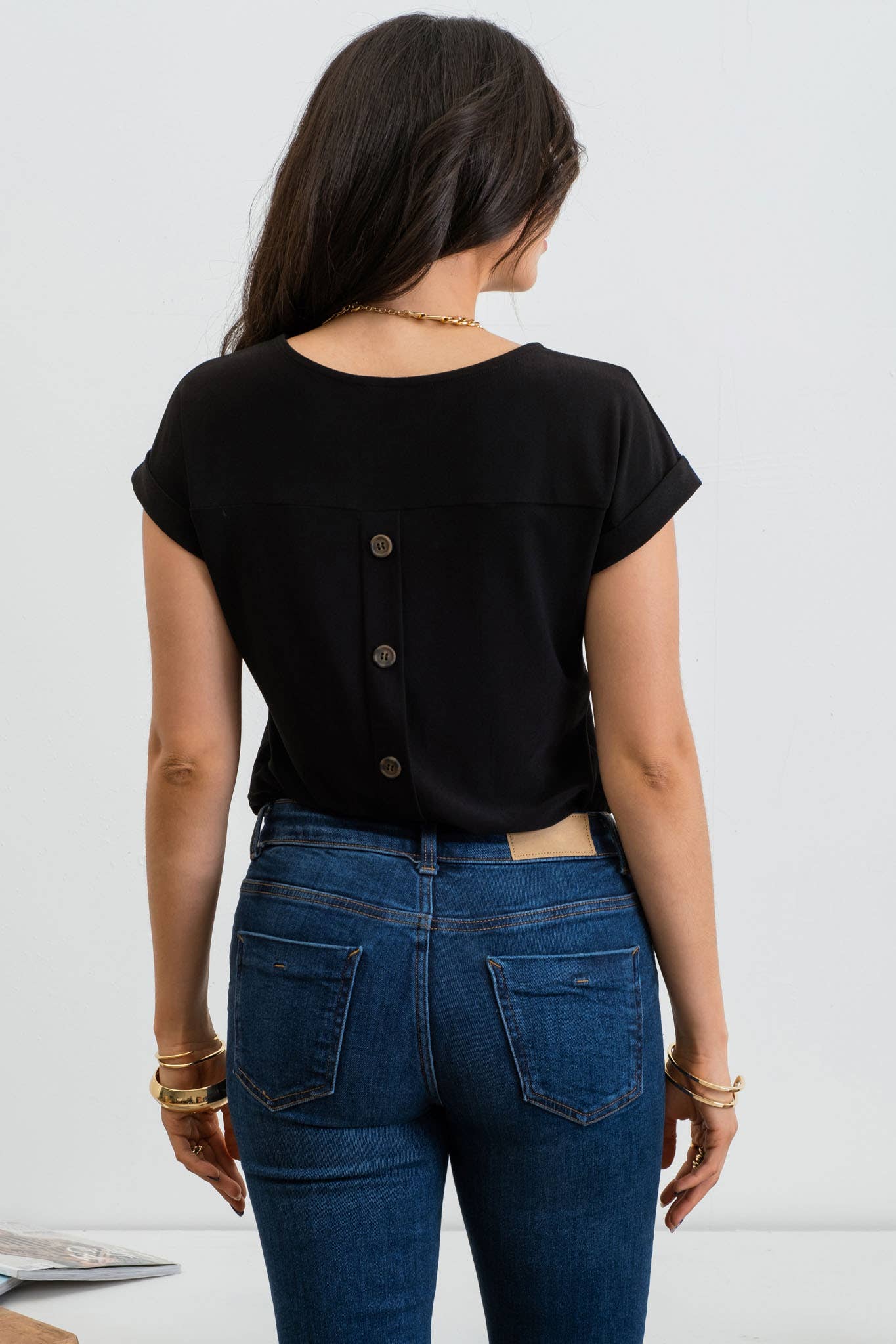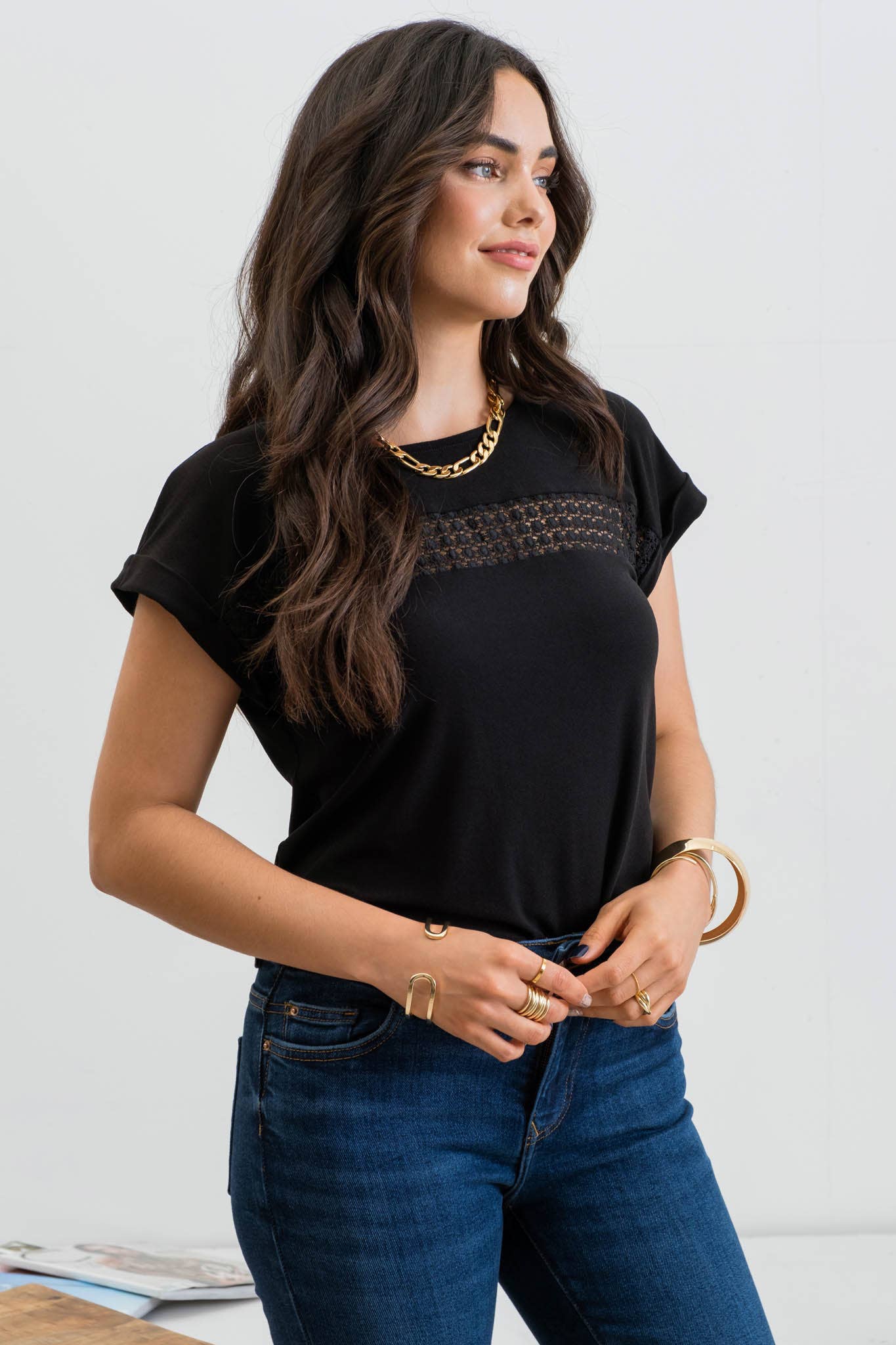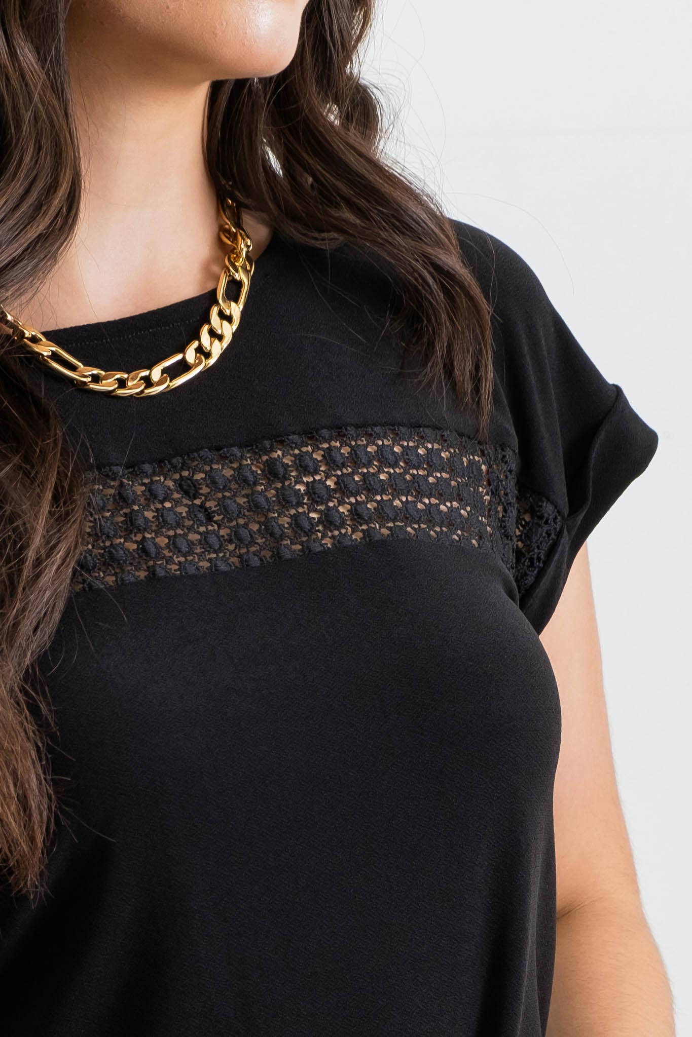 It's all in the details.  Button back, lace contrast and folded sleeves.
