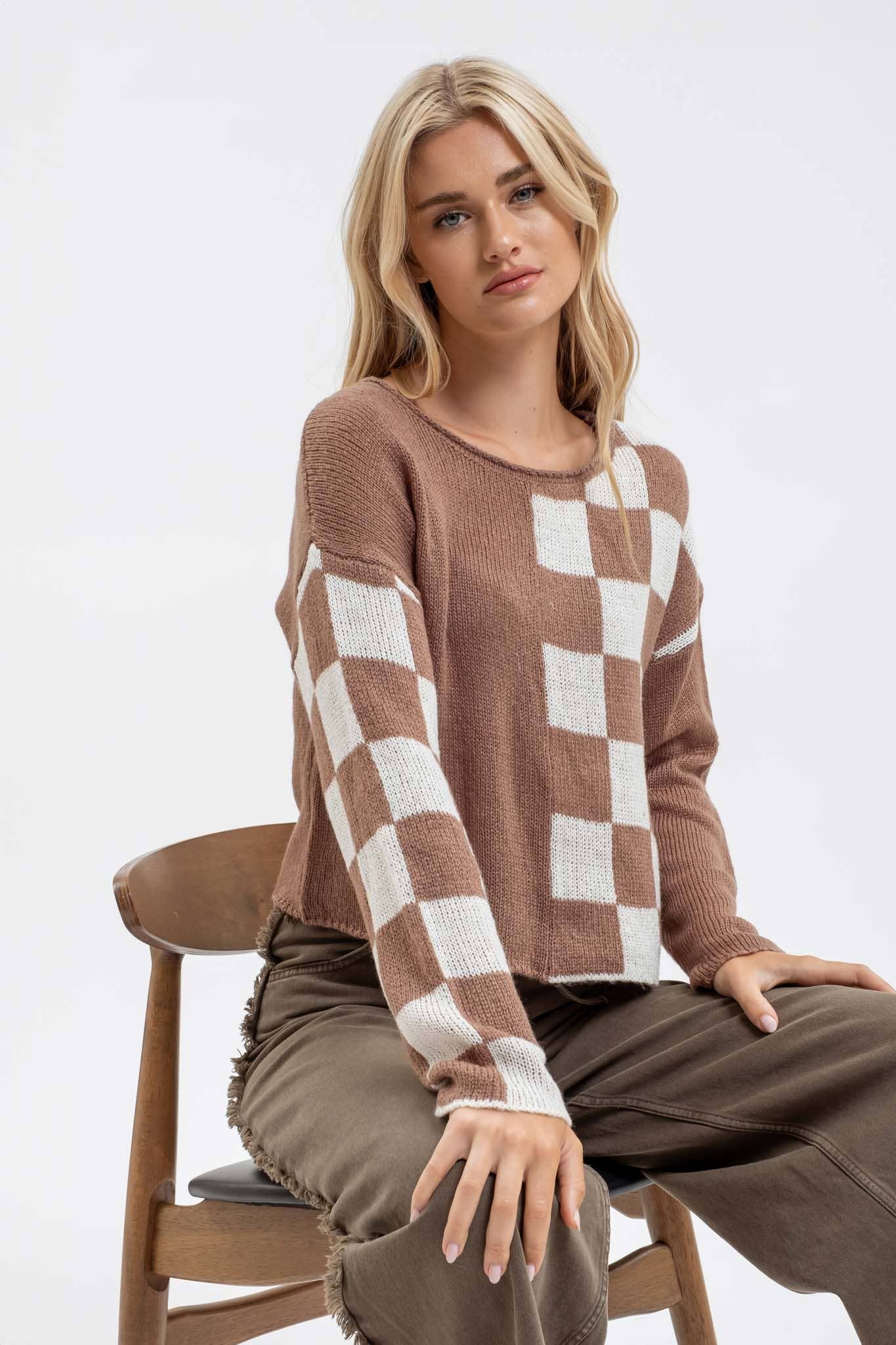 Check out this new addition to your fall wardrobe! The Check It Off Sweater features a unique checkered print, perfect for pumpkin patch pics. Along with comfort, this sweater will be sure to declare your fun and loving personality to all.