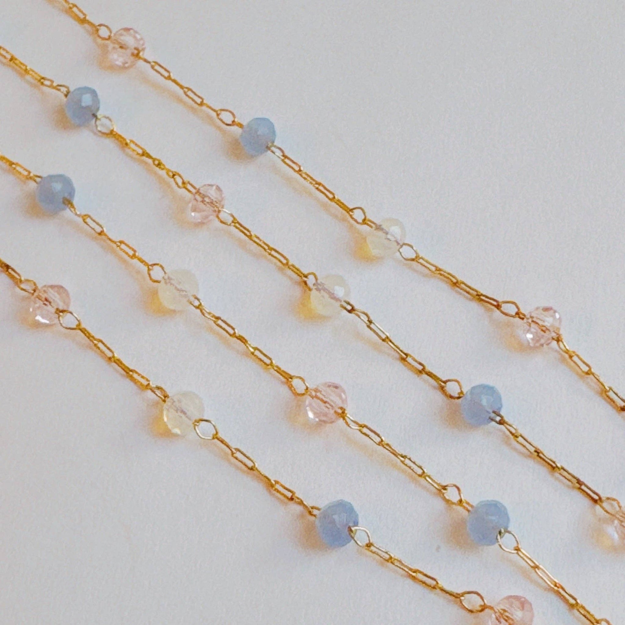 The beautiful, soft-colored beads resemble water droplets, while the delicate chain adds a feminine touch. Wear it alone or layer it for a chic and sophisticated look. Perfect for any occasion. Dimensions: Approximately 16" w/ 2"extender 18k gold plated brass.