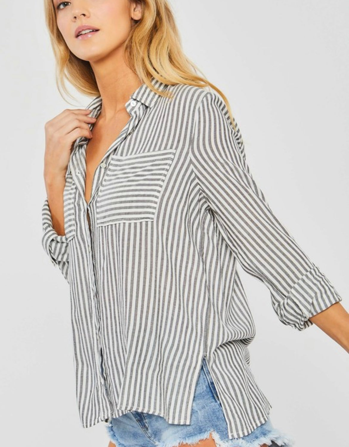 Lightweight breathable fabric perfect for a chic look with shorts or layered with your cozy sherpa on cold days.